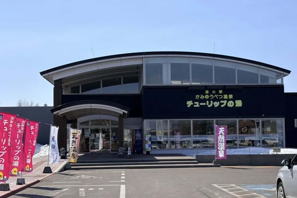 Yura Yubetsuから約徒歩5分、道の駅にある天然温泉です。